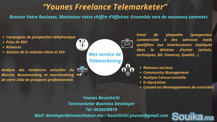 Je suis Younes de Casablanca. Je suis commercial Télémarketer en Freelance.