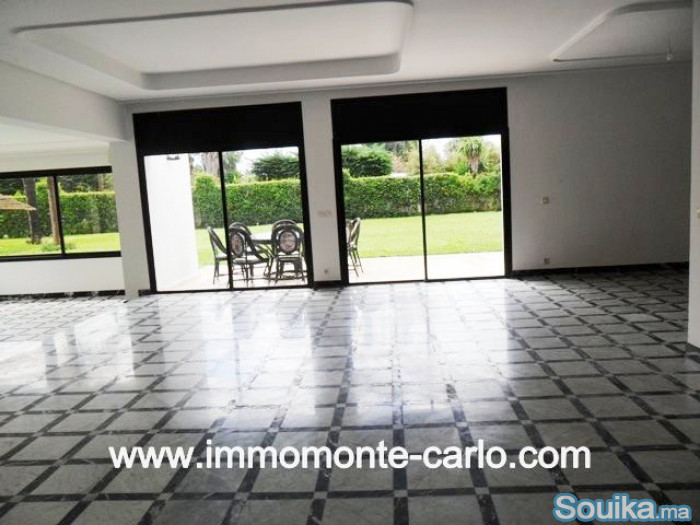 Rabat Souissi Location villa usage bureau ou habitation avec piscine, villa ensoleillée avec un jardin, un garage et puits, composée de triple salons avec cheminée, un séjour, bureau, chambre d’amis avec salle de bain, belle terrasse donnant sur la piscine et le jardin, salle d’eau des invités avec lave main, bureau suite parentale avec salle de bain et dressing, 3chambres avec deux salles de bain, terrasse et une cuisine, buanderie, débarras, logement de personnelavec accès séparé, …..